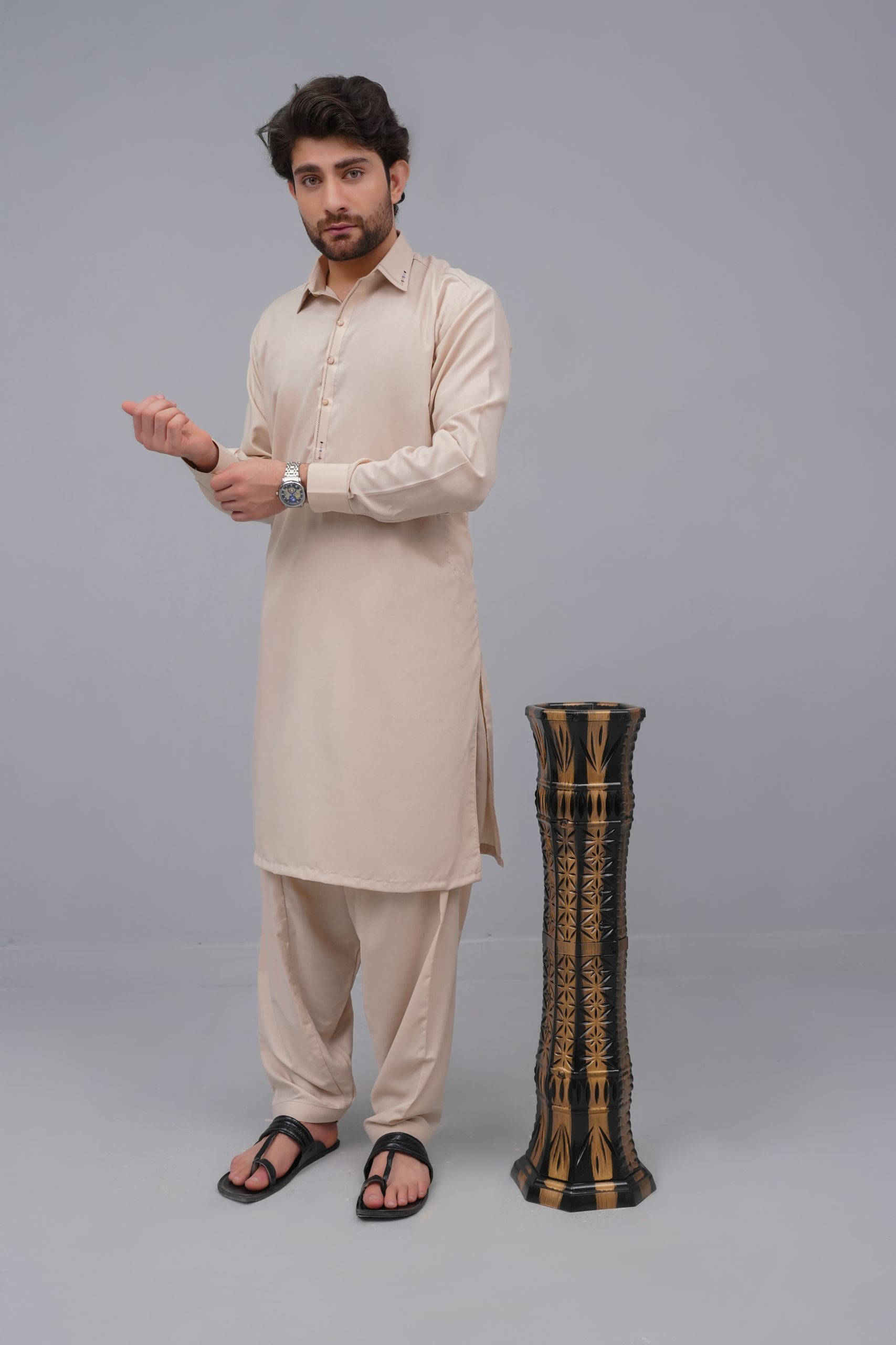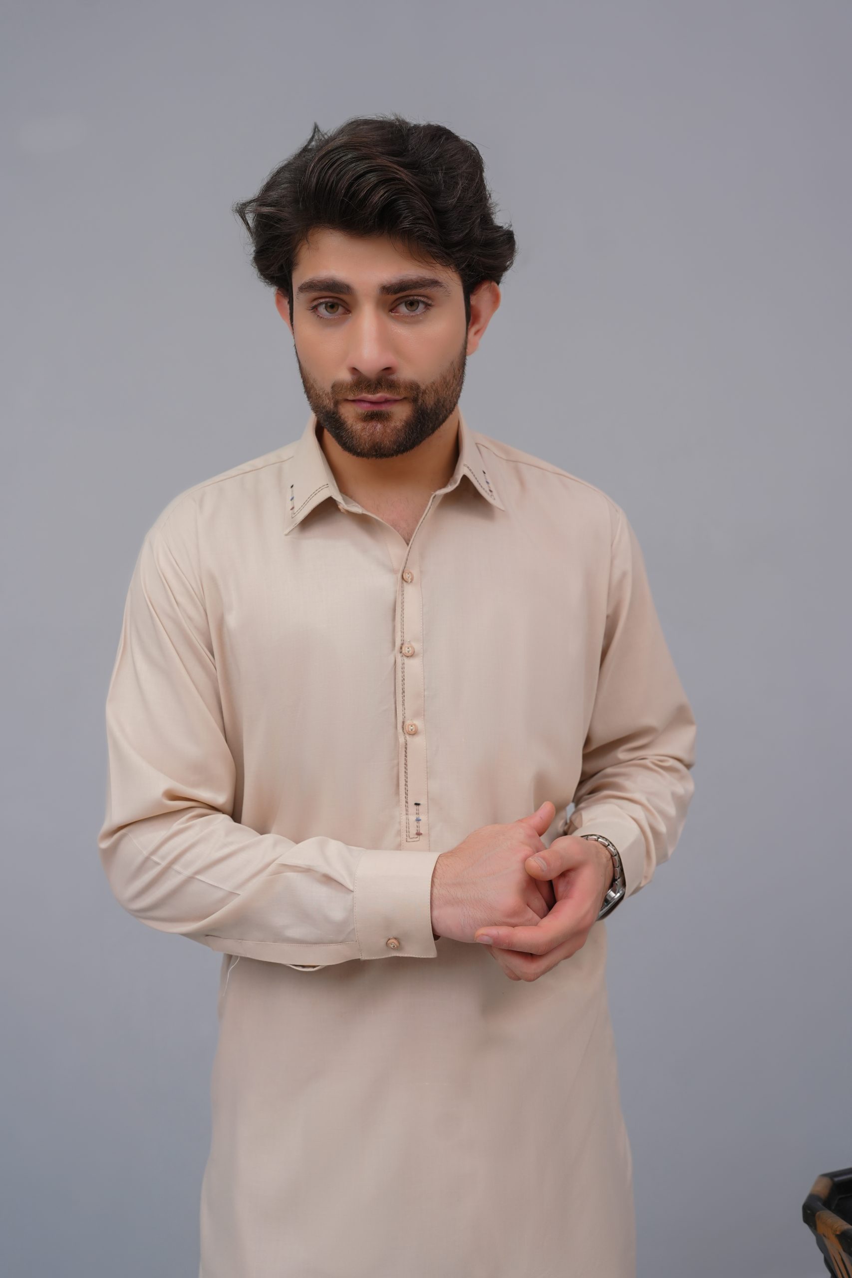 100% Wash & Wear fabric 2pcs Collar with Light Embroidery on collar & Front Placket