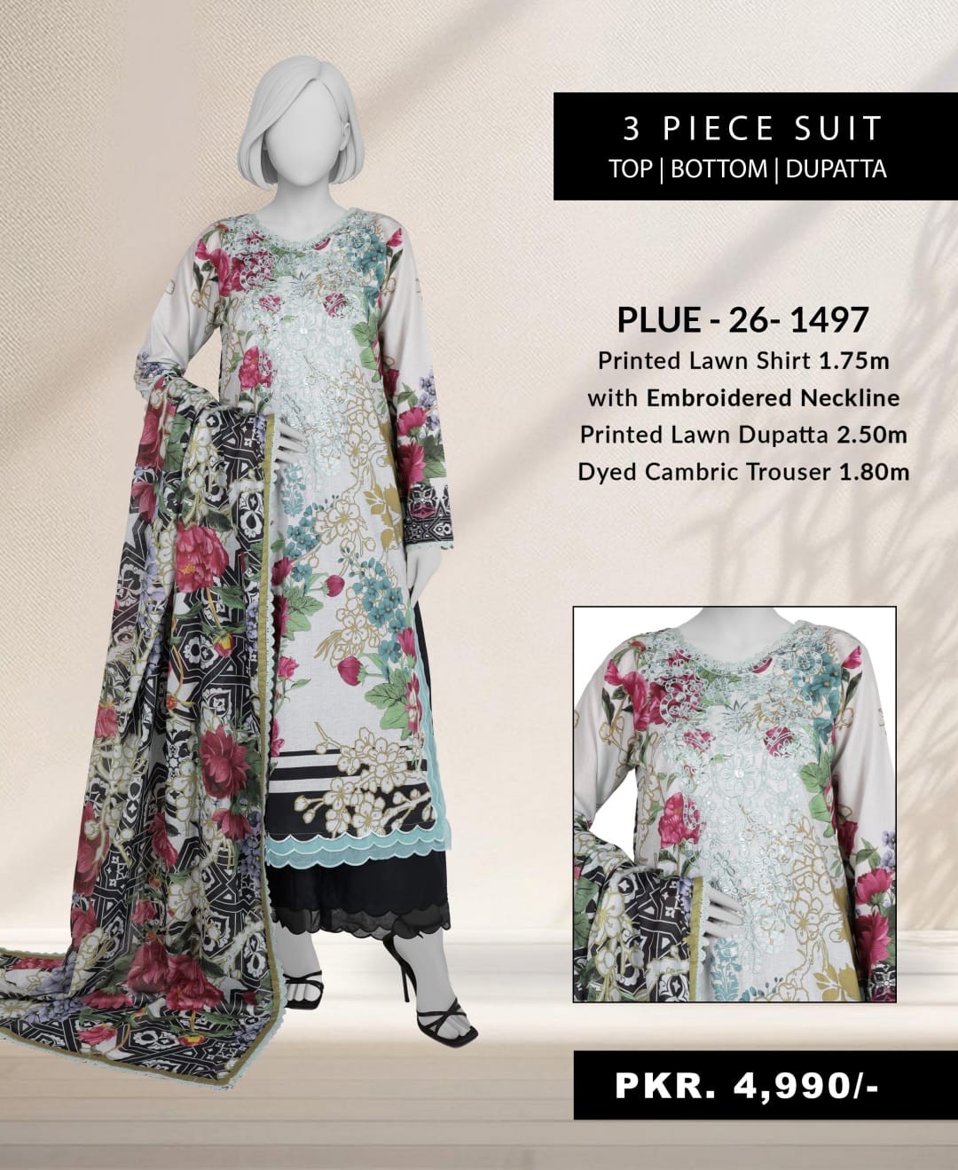 & Free ShippingPremium 3PC set: embroidered lawn shirt, digital dupatta, and dyed cambric trouser. Wholesale-ready with packing.