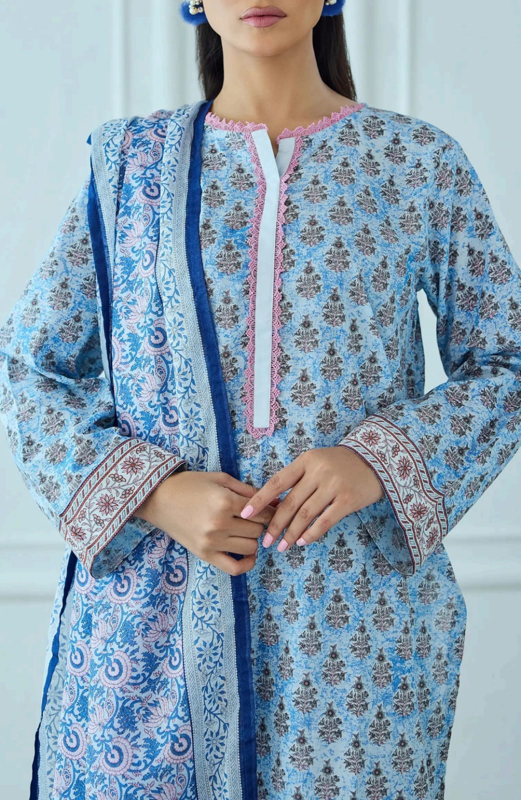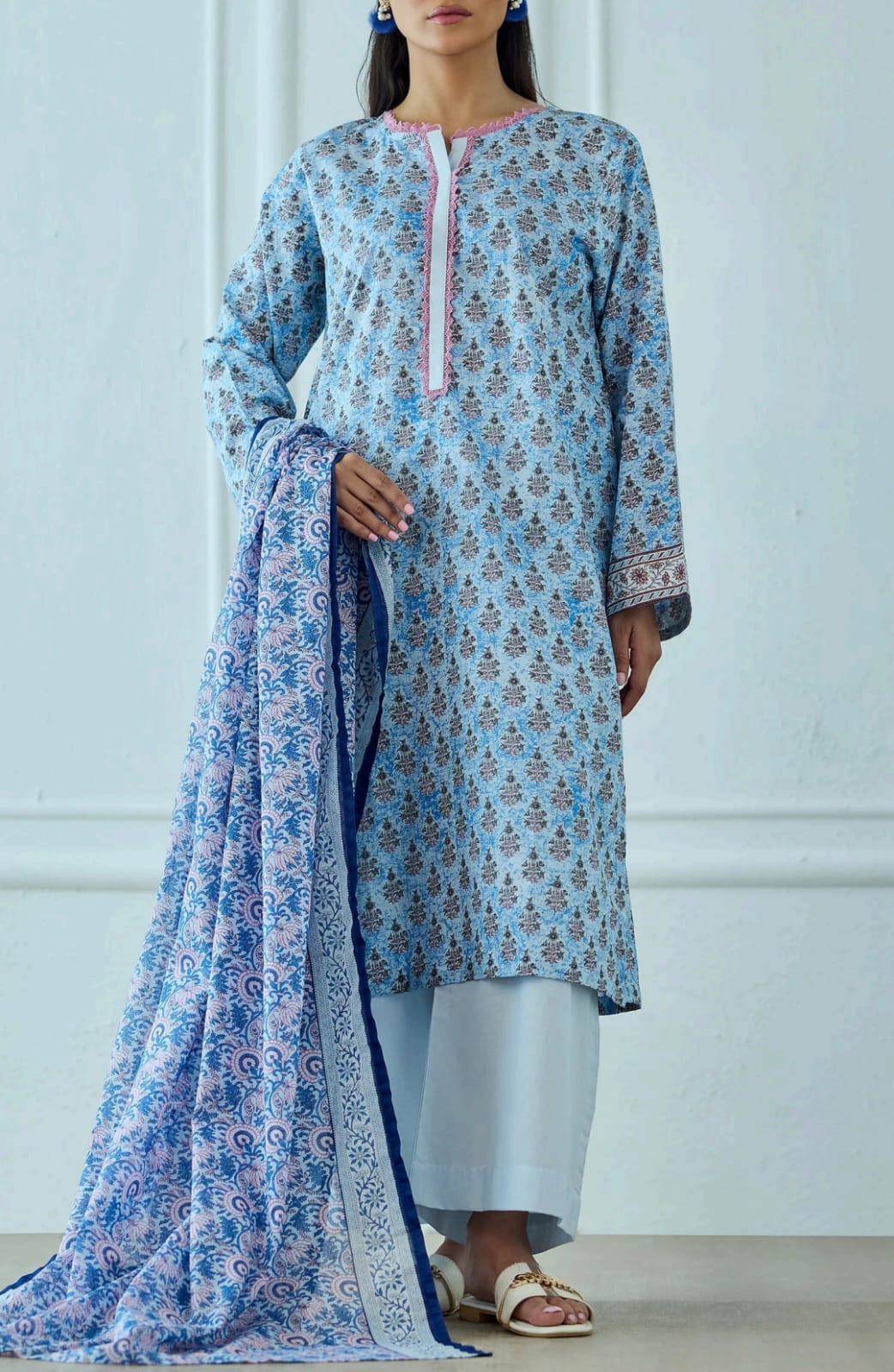 & Free ShippingLightweight and breathable 3-piece lawn suit for summer days.