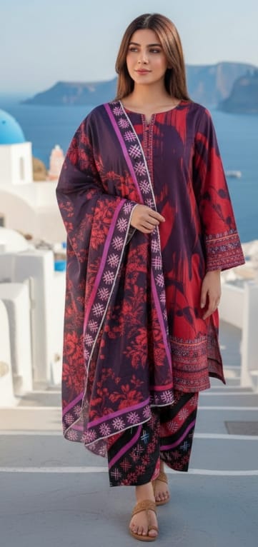 This Stella Regalia 3-Piece Printed Lawn Unstitched Suit is crafted from breathable lawn fabric with refined printed detailing. Designed for daily and casual use, it offers comfort and effortless styling.